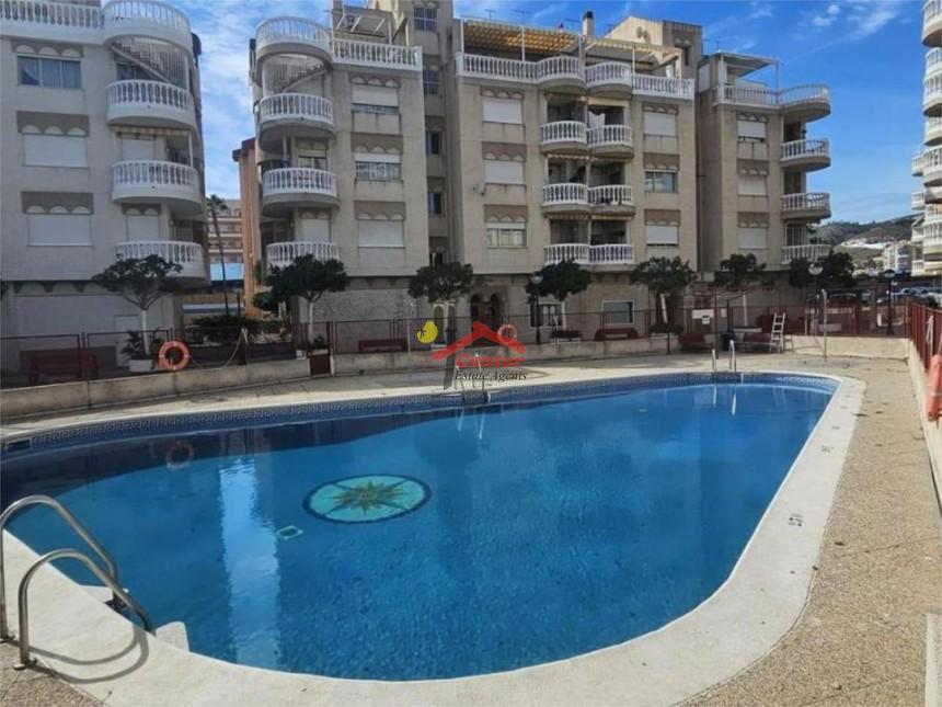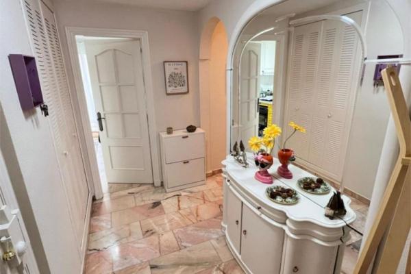Apartamento reformado de 3 dormitorios en Urb. Jardines del Mar, Almuñécar Se vende apartamento de 112 m2 construidos, con orientación sur, lo que le proporciona gran luminosidad y sol durante todo el día. La vivienda destaca por ser de esquina, ofreciendo mayor independencia respecto a los vecinos. Distribución y características: Zona de día: Recibidor, amplio salón comedor y cocina independiente totalmente equipada. Cuenta con lavadero cerrado y un tendedero techado. Zona de descanso: 3 dormitorios con armarios empotrados. Dispone de 2 baños completos (uno de ellos en suite). Exteriores: Terraza alargada y balcón de buen tamaño cerrado. Además, incluye un espacio en la azotea comunitaria. Calidades: Reforma reciente, suelos de mármol rosa portugués, ventanas de doble cristal La urbanización cuenta con piscina comunitaria y vistas a la ciudad. Se encuentra en una zona con fácil aparcamiento y excelente acceso a servicios, comercios, colegios e institutos. Ascensor en el edificio. Se entrega amueblado. Edificio construido en 1992.